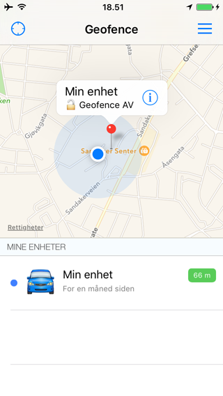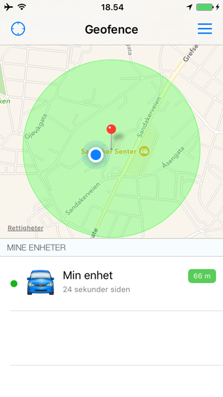 Du har nå fullført stegene for å komme igang og vil motta alarmer når enheten beveger seg utenfor geofence området. Du kan teste dette for å forsikre deg om at systemet fungerer som det skal.